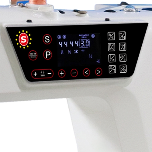 - Terdapat panel kontrol tombol pengatur panjang jahitan