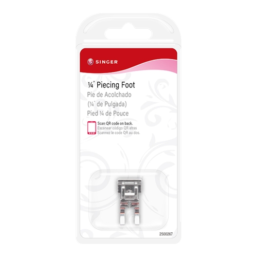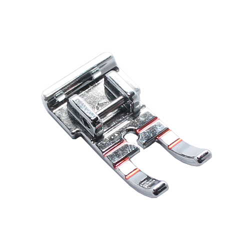 Dapat digunakan untuk karya yang memiiki jarak tepian kain yang sempit seperti baju bayi atau boneka. Garis-garis merah pada sepatu ini akan membantu anda memutar sudut secara tepat.